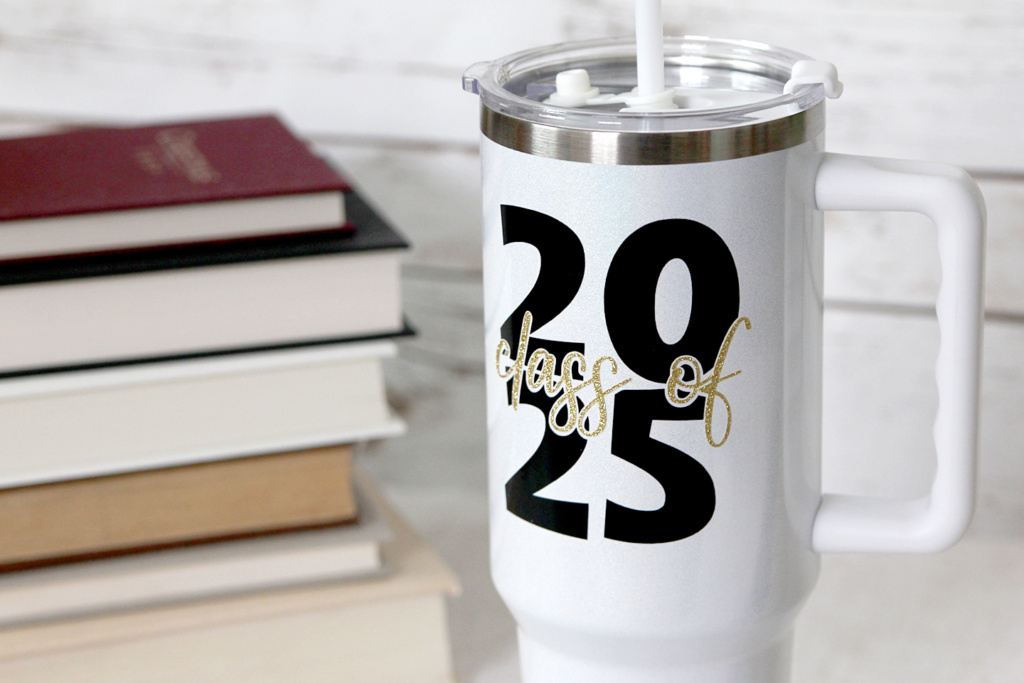 Celebrate your grad with a personalized tumbler using Silhouette Studio and the fonts on your computer! Join Kelly as she shares expert tips and tricks for customizing your design to make your graduate feel special. Choose 1-2 colors of permanent adhesive vinyl in their school colors to bring your creation to life. In class, Kelly will demonstrate using the Silhouette Cameo 5, but these techniques and the project can be done with any Silhouette machine. Plus, you’ll gain skills that can be used for future custom vinyl projects!