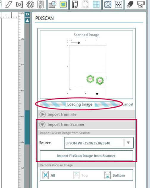 - In the PixScan™ window under Import to Scanner, select your scanner that should show on the list, and then click Import PixScan Image from Scanner.