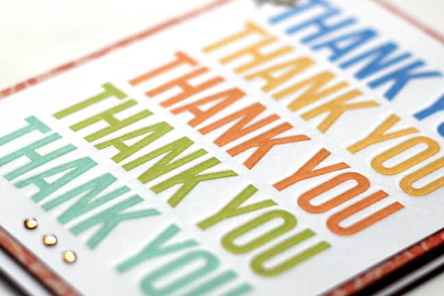 Have you tried the new Curio’s “print and emboss” feature yet? I made this card with my Curio, and I’m so “impressed” with how it turned out! All of these colorful words are embossed around the edges so the letters are gently raised above the rest of the card surface.