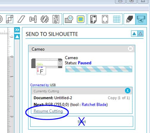 - After you’ve done that, click Resume Cutting. (Do NOT click Start.)