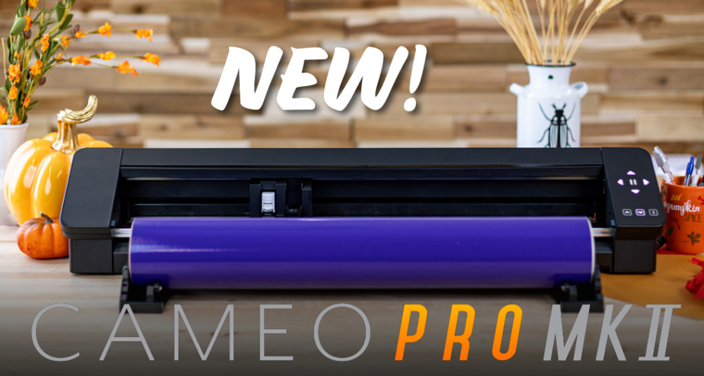 New Cameo Pro MKII – released November 15, 2024. This is an upgrade to the Cameo 4 Pro — it has all the perks and upgrades included with the Cameo 5 and features exclusive to the 24″ model (quieter, excellent roller grip, adjustable roller grip to hold materials between 5″-24″ wide, repeat job function, powered Tool Carriage 2 for using the new heat pens, auto cross cut, emergency stop, and more!!) Read more about the Pro MKII here.