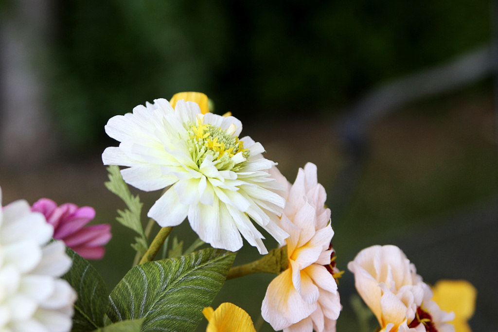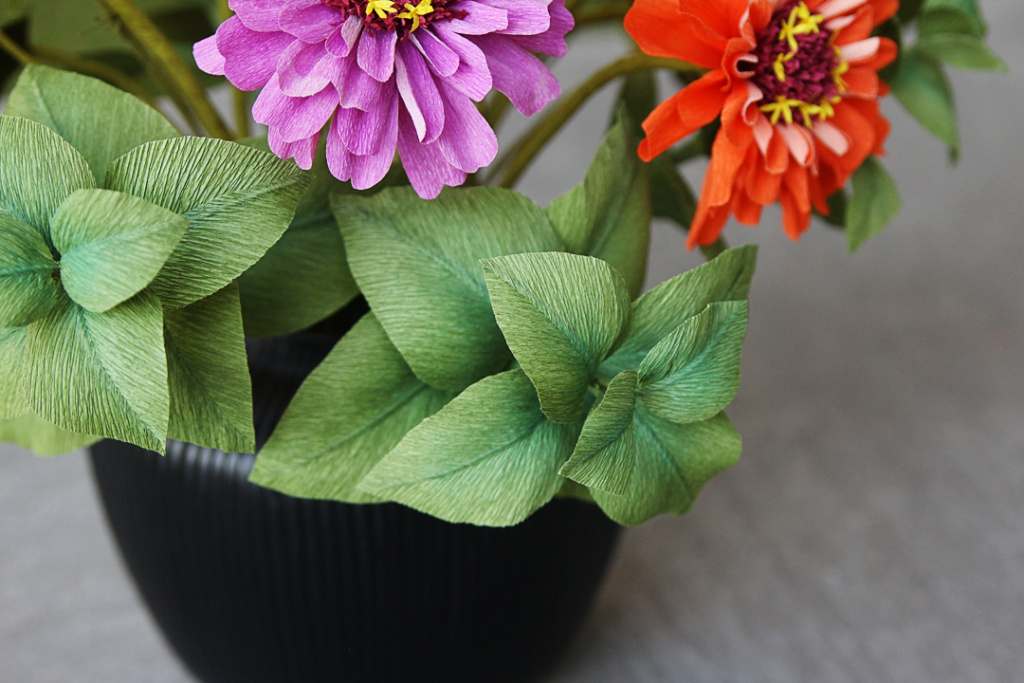 I cut some of the leaves and petals for this arrangement by hand, but I cut most of the zinnia petals and leaves with my Silhouette Cameo 5. Check out my Lia Griffith Silhouette cutting machine course here.