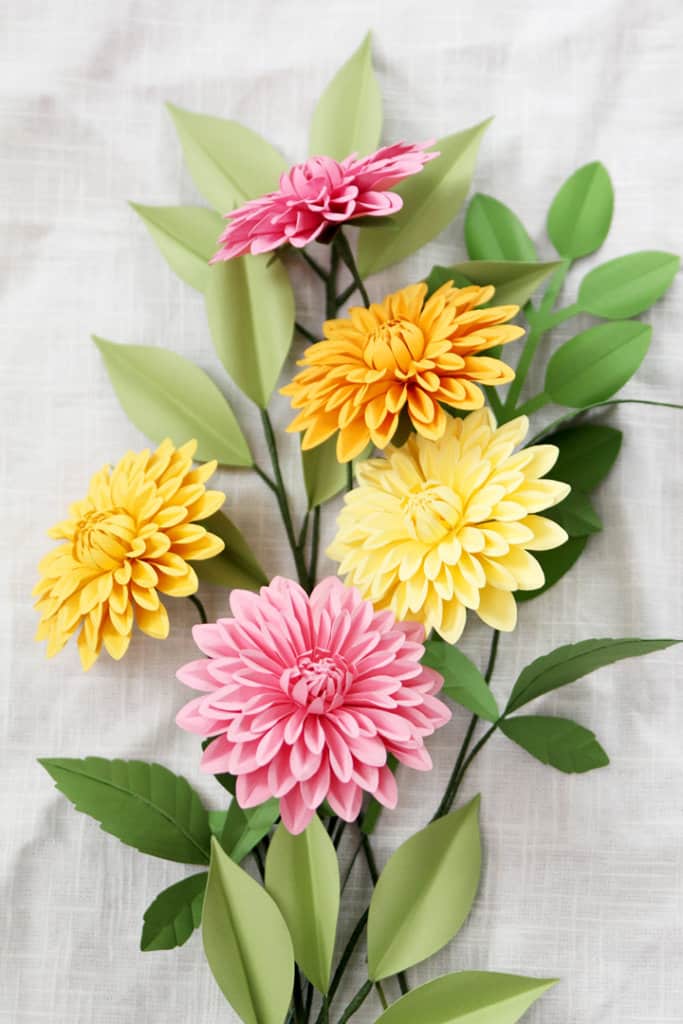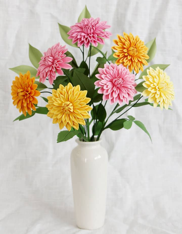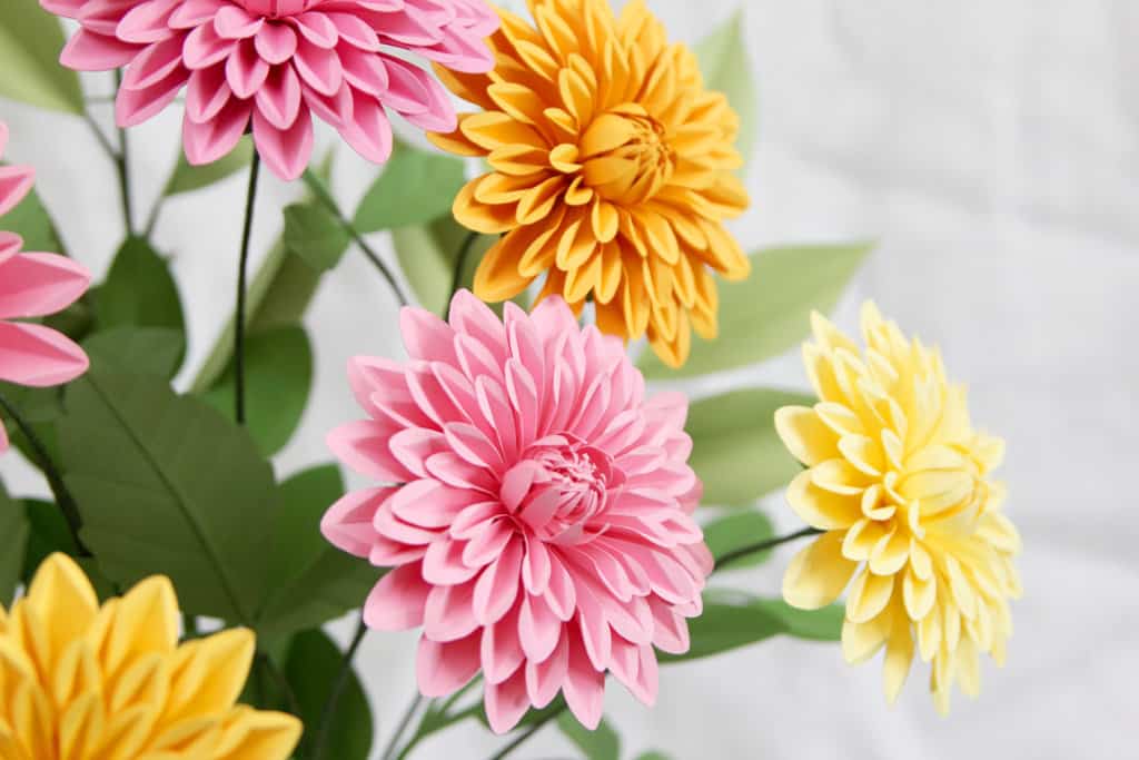 Description: In this premium Silhouette class, I will teach you how to create a beautiful paper dahlia bouquet with cardstock and floral supplies. Learn paper flower-making techniques including cutting, shaping, and assembling. We’ll finish by arranging the assembled flowers and greenery into a vase. You can use any model of Silhouette cutting machine for these paper flowers and greenery. I will use the Cameo 4 in class.